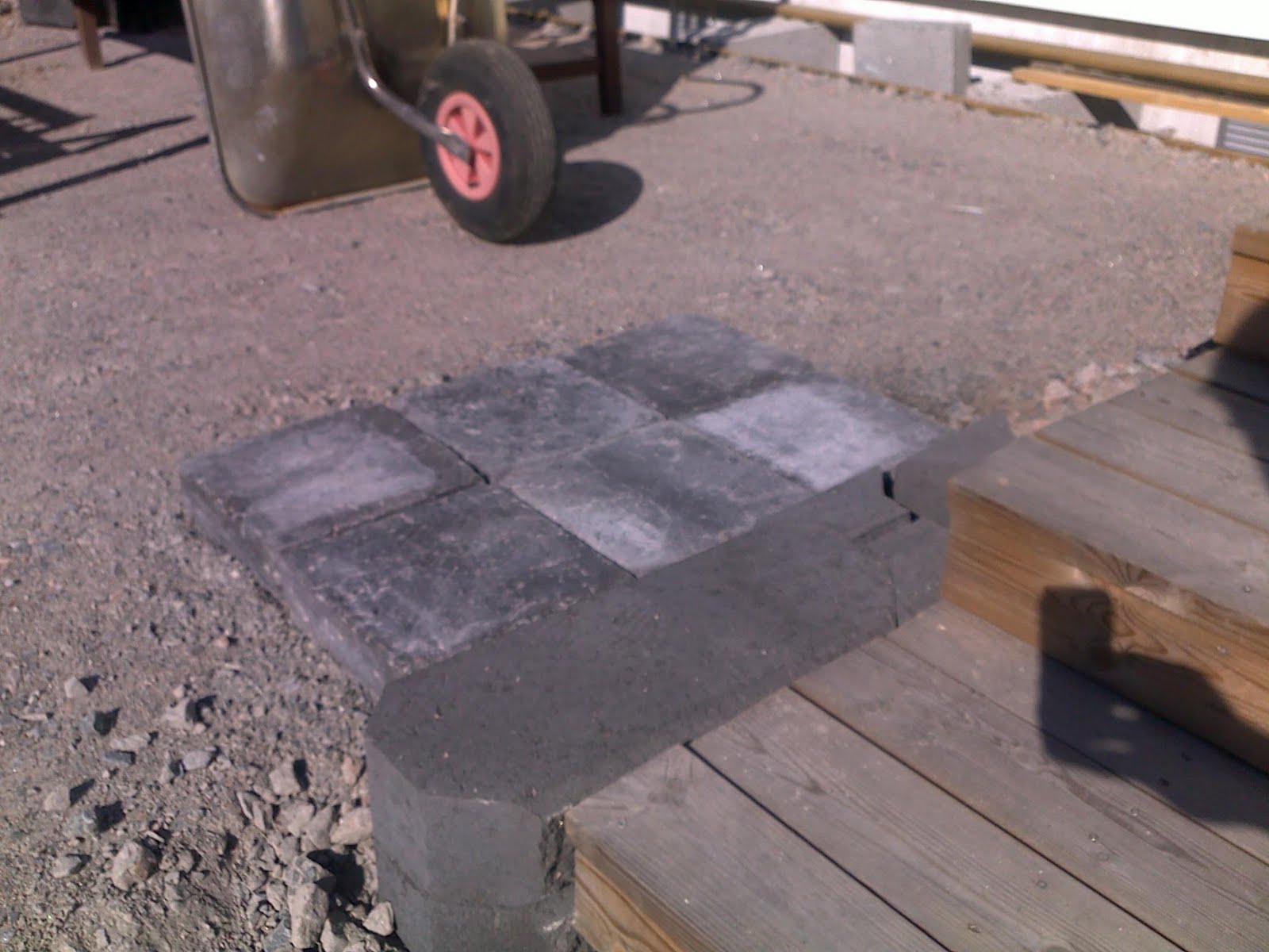Toinen malli on sitten kauan odotettu terassi. Lakan muurikivestä reunat ja varsinainen patio-osa sitten Lakan antiikkilaatasta (240x240).